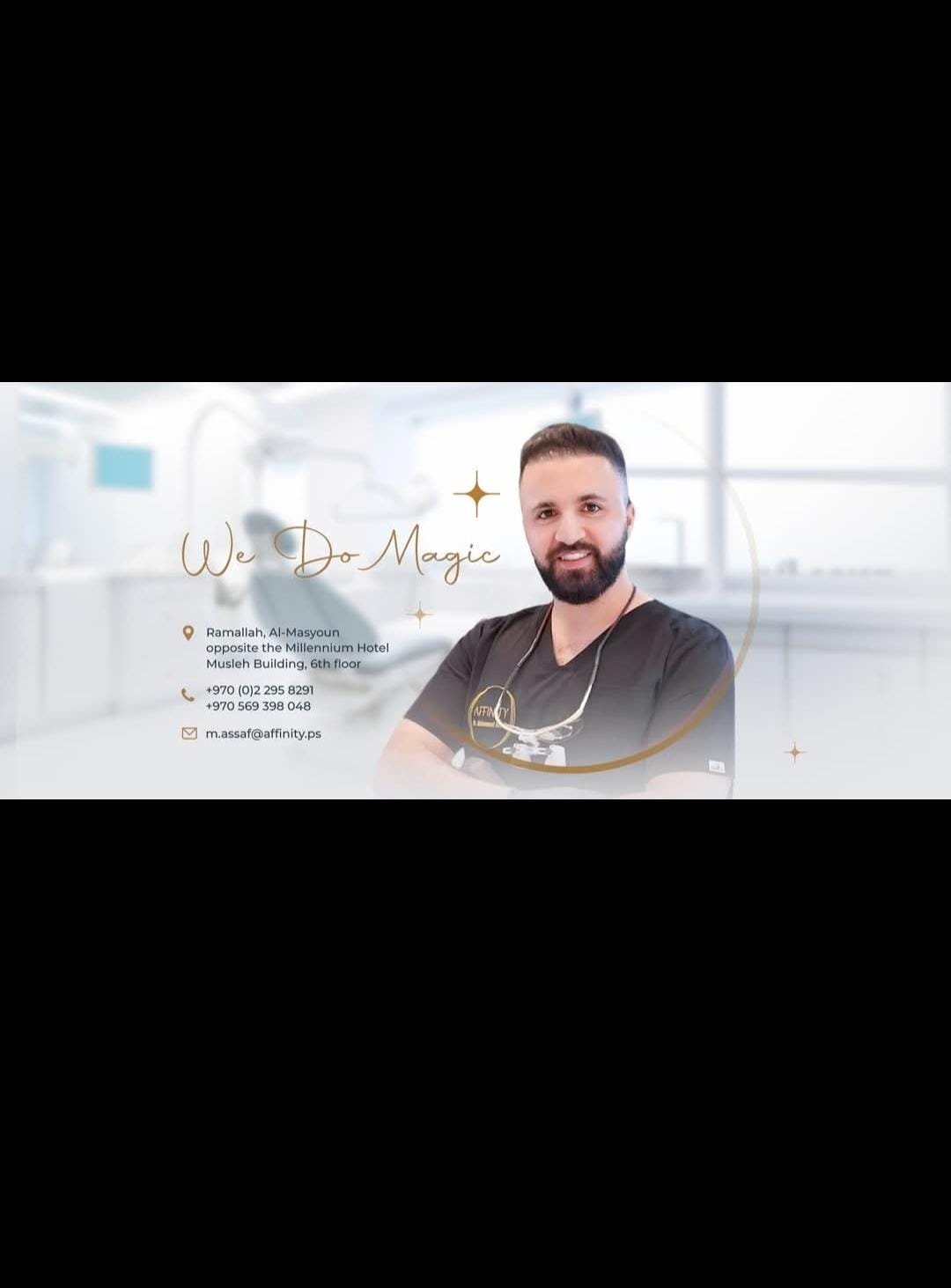رام الله والبيرة - الماصيون - عمارة مصلح الطابق السادس مقابل فندق الميلينوم متخصصة في طب الأسنان التجميلي هوليوود سمايل زراعة وتجميل الاسنان حشوات تجميلية التقويم الشفاف علاجات عصب اوقات الدوام يوميا من الساعة 9 صباحا حتى 5 مساءا الجمعة عطلة رسمية الرجاء الحجز مسبقا